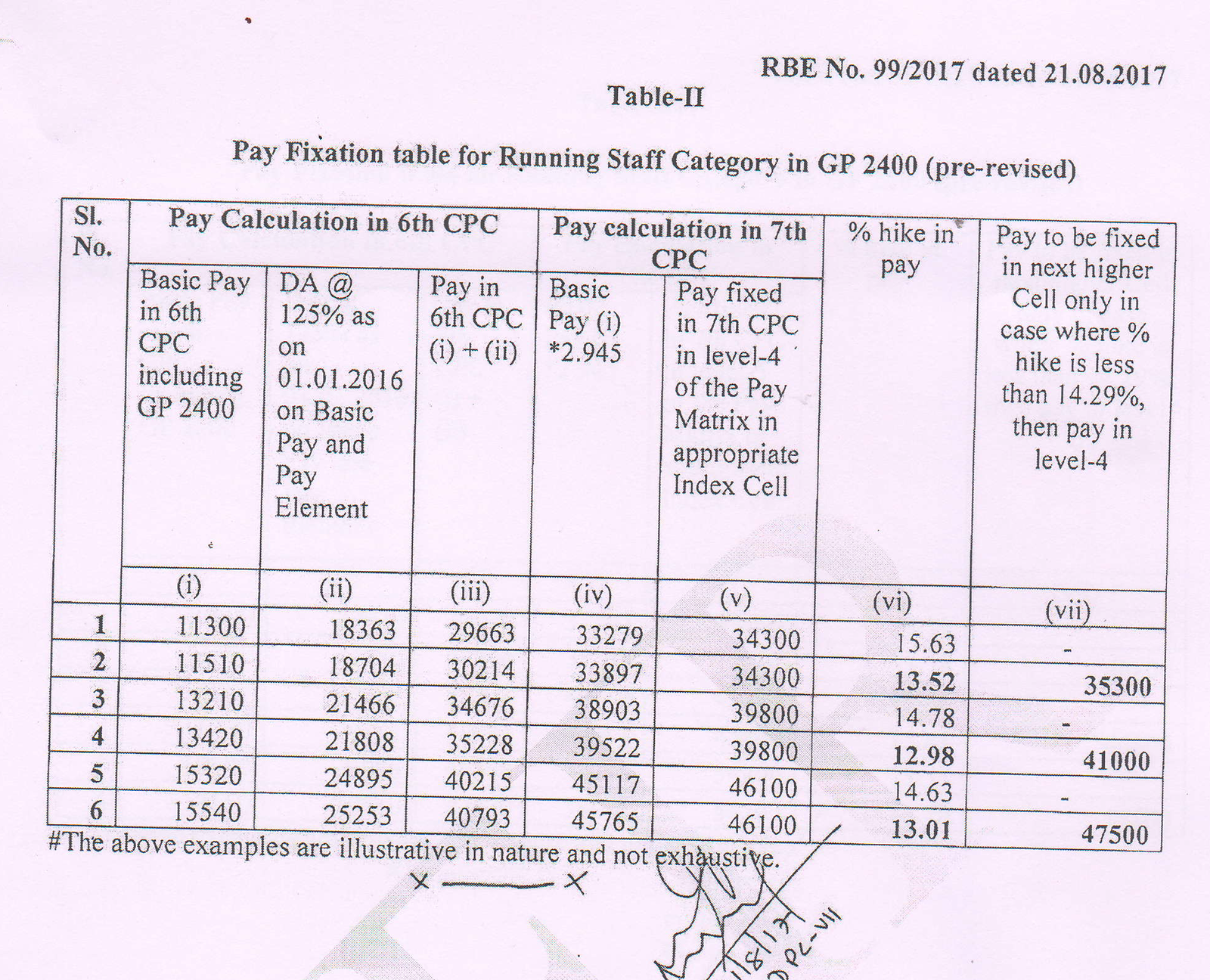 2. It was observed that the pay fixed in 7th CPC pay structure as per the methodology laid down in Board’s letter dated 02.08.2016 is coming out to be less than 14.29% increase of pay prescribed by 7th CPC, in certain cases of Running Staff.