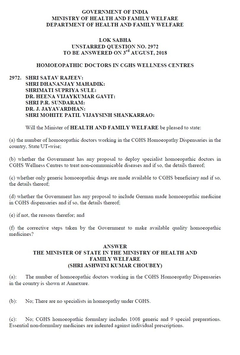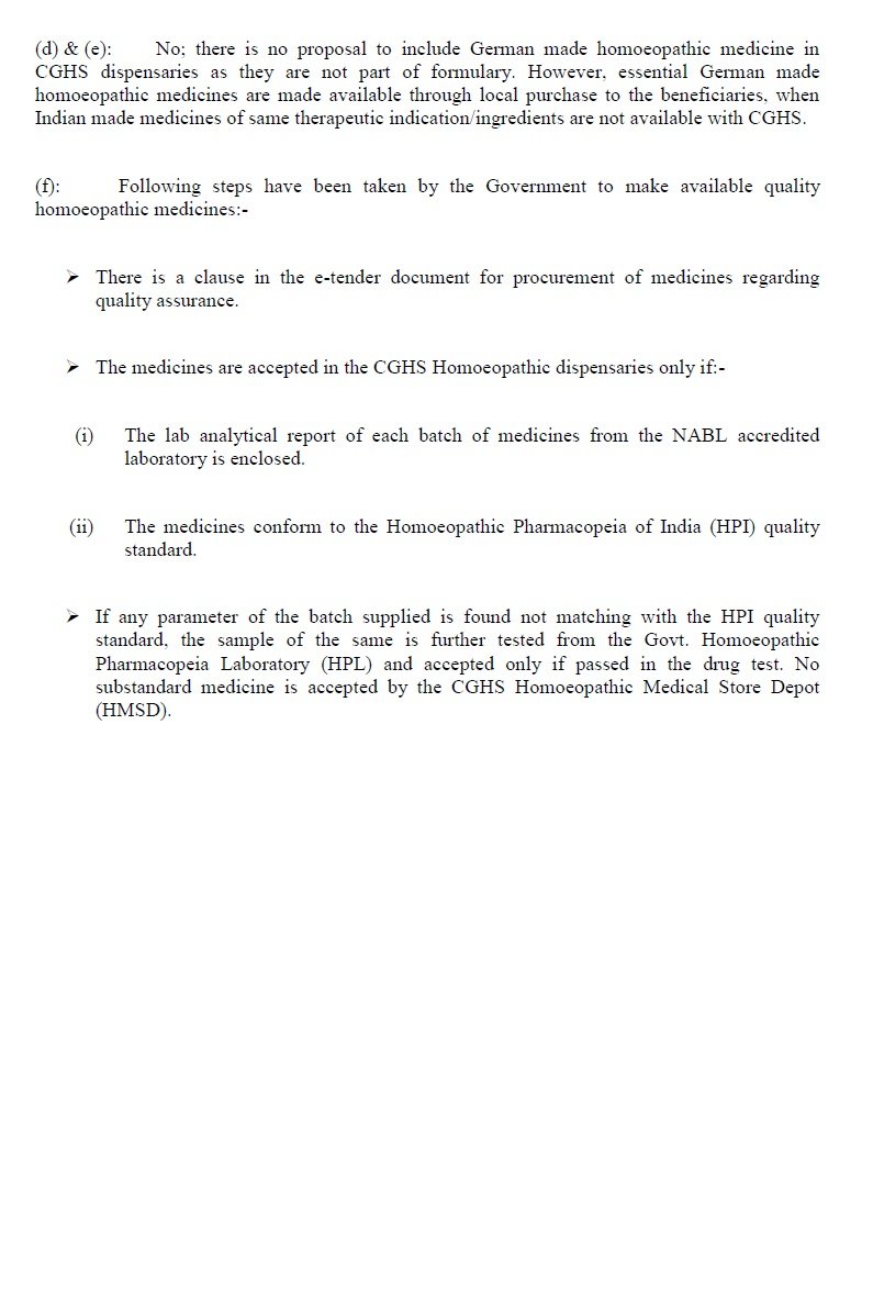 - The number of homoeopathic doctors working in the CGHS Homoeopathy Dispensaries in the country is shown at Annexure.